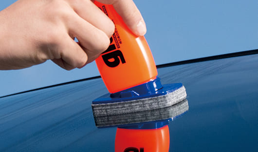 塗り込みヘッドがフロントガラスの3次元曲面にフレキシブルに追従し、塗りムラを抑制すると同時に、手首への負担を軽減します。