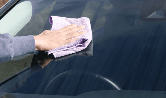 乾いたタオルでは白く残って、しっかりと拭き取れません。キレイな面を出しながら、拭き残しのないように作業してください。マイクロファイバークロスを利用いただくと、よりスピーディにスッキリ仕上がります。