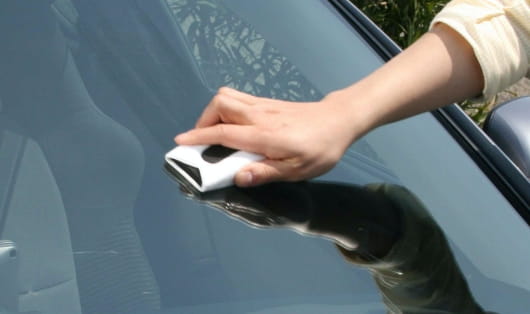特殊シートは、被膜形成に最適な液量をガラス面に供給しながら、余剰成分をかき取り、ムラを作らないようふき取るという工程をこなします。